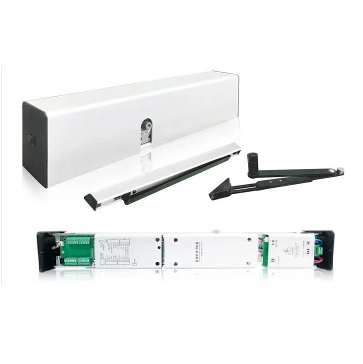 This heavy duty door operator, is a highly capable unit that can be managed by sensors, press buttons, card readers and infrared hand sensors.